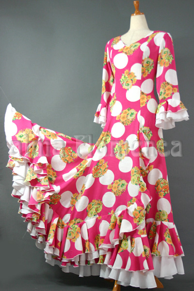 け回しに生地をたっぷり使い、脚は充分に開き裾もとりやすく初心者様から安心してお使いいただける、クラッシックでオーソドックスでとてもフラメンカなデザイン。裾は可愛いイレギュラーボランテ。