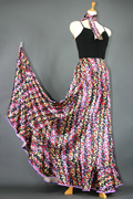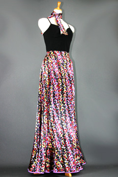 仕様は後ろ開きホック&ファスナー。ウエスト部はベルトのない7枚はぎ。(EG-TR13と同型)お尻の下辺りまで裏地が付いて透けません。同布のピキージョ(プチスカーフ)付きでステージにも。