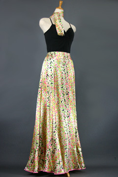 仕様は後ろ開きホック&ファスナー。ウエスト部はベルトのない7枚はぎ。(EG-TR13と同型)お尻の下辺りまで裏地が付いて透けません。同布のピキージョ(プチスカーフ)付きでステージにも。