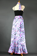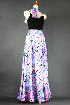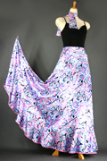 仕様は後ろ開きホック&ファスナー。ウエスト部はベルトのない7枚はぎ。(EG-TR13と同型)お尻の下辺りまで裏地が付いて透けません。同布のピキージョ(プチスカーフ)付きでステージにも。