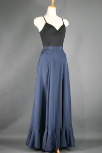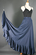 一段ボランテファルダに無地登場。7枚はぎで正面はすっきりシームレス。練習は勿論、マントンなどを合わせれば、立派にソレアやシギリージャ等のからくちヌメロのステージにも使えます。 仕様は後ろ開きホック&ファスナーでウエスト部すっきり。 サイズ展開は6種類。ウエスト78cmまで、スカート丈は105cmまで対応し、今まで既成ファルダに縁の薄かった方にも、自信を持ってオススメ致します。