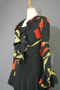 スペインにて店主が厳選した上質なジョーゼットを使用。あわせ易い上品な柄であり ながら発色が鮮やかなので、ステージ映えも最高。