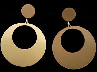 プラスティックで軽くて使いやすいピアス。お揃いのペイネタも。
