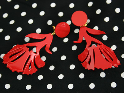 スペインの花クラベル(カーネーション)をモチーフとした、立体的なイヤリング・ピアス。 踊るとゆらゆら揺れて可愛い。お揃いのペイネタとのコンビ使いでコーディネートばっちりです。