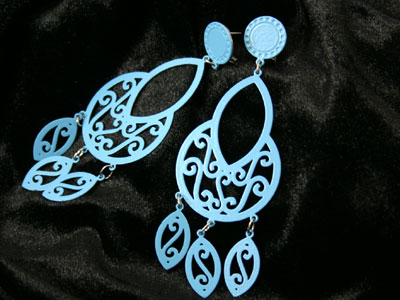 下のパーツは踊ると華やかに揺れる。素材は軽くて薄いメタル、発色もとても鮮やか。