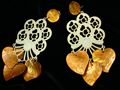 素材は軽くて薄いメタルとシェル(貝殻)使いが新しく、エキゾティックな柄でとても印象的な逸品。