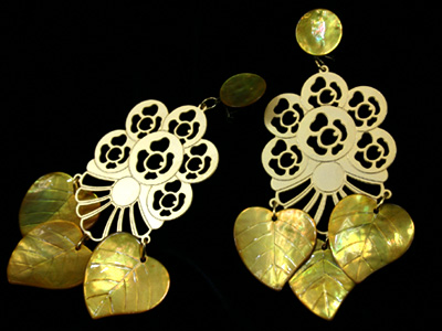 素材は軽くて薄いメタルとシェル(貝殻)使いが新しく、エキゾティックな柄でとても印象的な逸品。