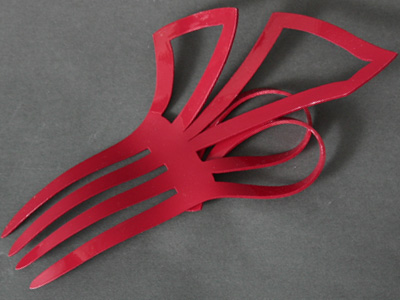 個性的な形が意外にどんな衣装にも合わせやすく、前から見ても後ろから見ても秀逸な形で店主一押し。軽いプラスティック素材で扱い易くステージ使いに大評判です。